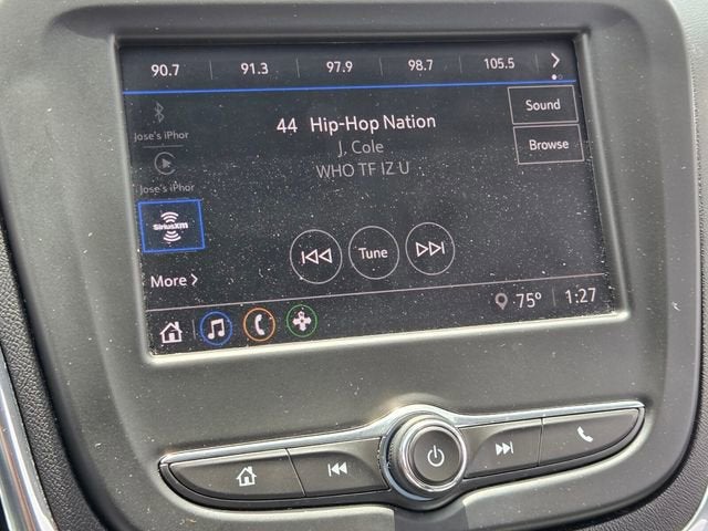 - Audio system, Chevrolet Infotainment 3 system, 7" diagonal color touchscreen, AM/FM stereo. Additional features for compatible phones include: Bluetooth® audio streaming for 2 active devices, voice command pass-through to phone, Apple CarPlay and Android Auto capable.