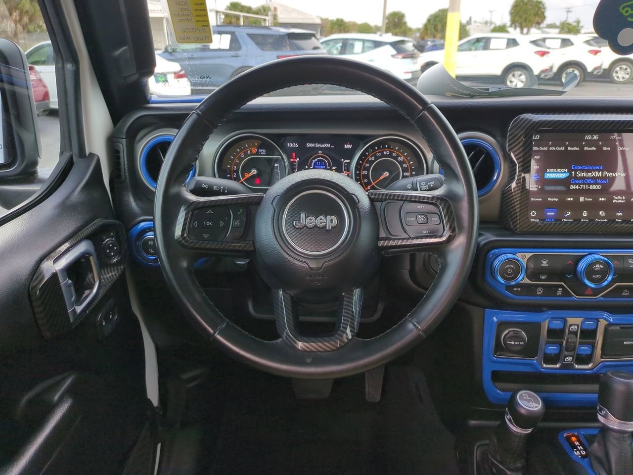 TRANSMISSION: 8-SPEED AUTOMATIC (850RE) -inc: Transmission Skid Plate, Selec-Speed Control, RADIO: UCONNECT 4C NAV W/8.4" DISPLAY, ENGINE: 3.6L V6 24V VVT UPG I W/ESS (STD), CONVENIENCE GROUP -inc: Universal Garage Door Opener, BRIGHT WHITE CLEARCOAT, BLACK 3-PIECE HARD TOP -inc: Freedom Panel Storage Bag, Rear Window Defroster, Rear Sliding Window, ALPINE PREMIUM AUDIO SYSTEM -inc: 220 Amp Alternator, Wireless Phone Connectivity, Variable Intermittent Wipers, Vanity w/Driver And Passenger Auxiliary Mirror. This Jeep Gladiator has a powerful Regular Unleaded V-6 3.6 L/220 engine powering this Automatic transmission.