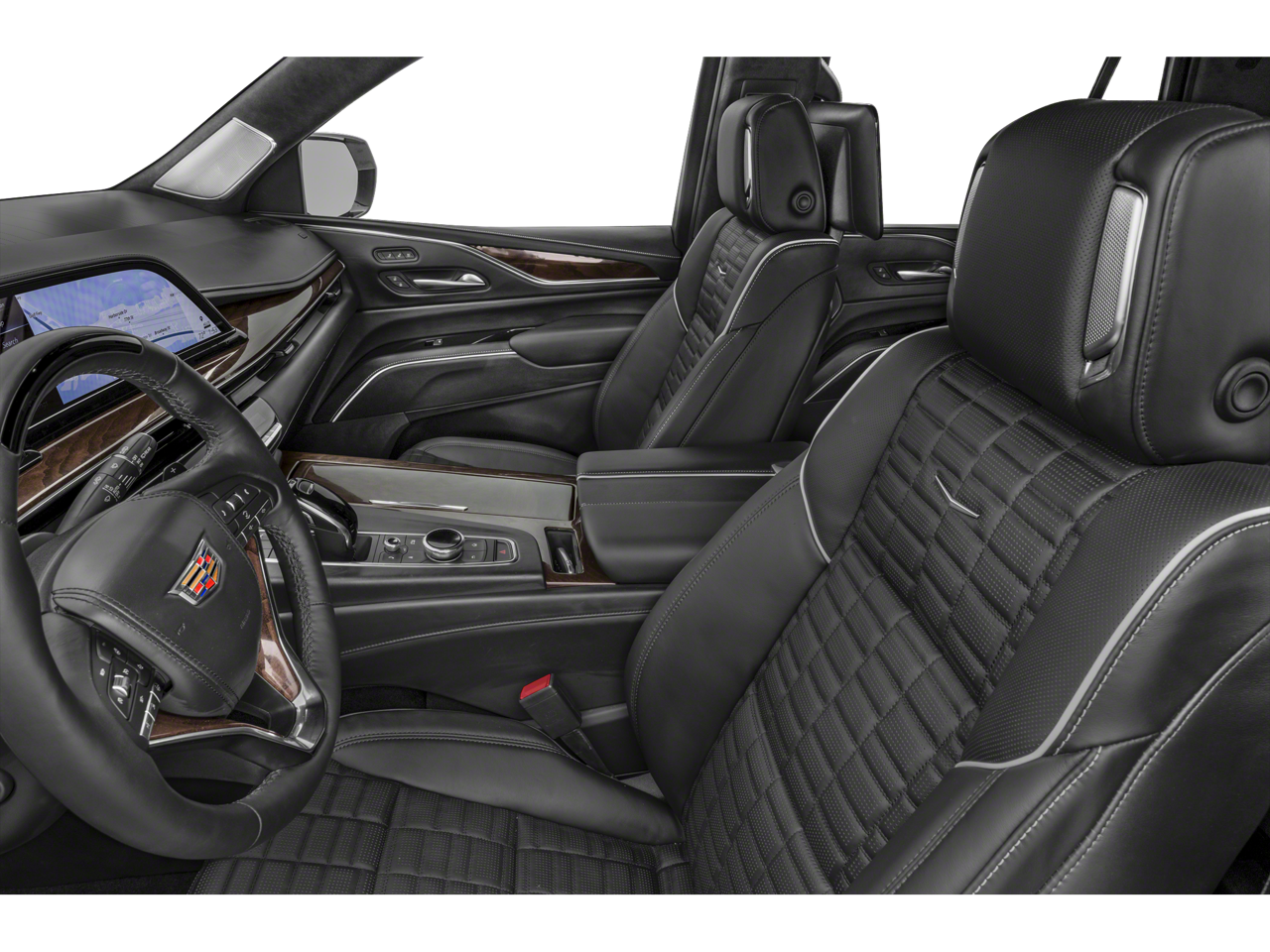 LPO, ONYX PACKAGE includes (SFZ) Monochrome Cadillac emblems, LPO, (RIK) Gloss Black Escalade nameplate, LPO, and (SSX) 22" 12-Spoke Gloss Black finish alloy wheels, LPO (Includes wheel locks. , LPO, MONOCHROME CADILLAC EMBLEM, LPO, GLOSS BLACK ESCALADE NAMEPLATE located on rear liftgate, LPO, 22" (55.9 CM) 12-SPOKE GLOSS BLACK ALLOY WHEELS includes wheel locks, GVWR, 7400 LBS. (3357 KG) (STD), ENGINE, 6.2L V8 WITH DYNAMIC FUEL MANAGEMENT Direct Injection and Variable Valve Timing, includes aluminum block construction (420 hp [313.2 kW] @ 5600 rpm, 460 lb-ft of torque [623.7 Nm] @ 4100 rpm) (STD), CRYSTAL WHITE TRICOAT, CONSOLE REFRIGERATOR freezer mode, covered storage, large and small storage bins, dual cup holders, second row electronic climate and heated seat controls. Also includes auxiliary power outlet, USB A/C ports and 110-volt outlet, ASSIST STEPS, POWER-RETRACTABLE WITH PERIMETER LIGHTING, 3 YEARS OF ONSTAR & CONNECTED SERVICES PLAN see onstar.com for information. Access the entire suite of OnStar Safety & Security Services and Connected Services. For retail customers, this includes the OnStar Guardian app, 36 months of SiriusXM with 360L, connectivity for available In-Vehicle Apps, In-Vehicle Wi-Fi Hotspot data and Remote Access through the myCadillac mobile app. Fleet customers will receive OnStar Vehicle Insights instead of Remote Access Eligible vehicles receive 3-years of the OnStar and Connected Services Premium Plan, including the Connected Vehicle Plan and the OnStar Safety & Security Plan. Connected Vehicle Plan includes connectivity for available in-vehicle