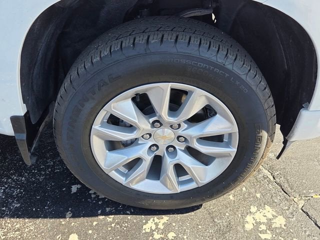 SUMMIT WHITE, STEERING COLUMN LOCK, ELECTRICAL, SEATS, FRONT 40/20/40 SPLIT-BENCH with covered armrest storage and under-seat storage (lockable) (STD), REAR AXLE, 3.42 RATIO, JET BLACK, CLOTH SEAT TRIM, ENGINE, TURBOMAX (310 hp [231 kW] @ 5600 rpm, 430 lb-ft of torque [583 Nm] @ 3000 rpm) (STD), CUSTOM PREFERRED EQUIPMENT GROUP includes standard equipment, AUDIO SYSTEM, CHEVROLET INFOTAINMENT 3 SYSTEM 7" diagonal HD color touchscreen, AM/FM stereo, Bluetooth® audio streaming for 2 active devices, voice command pass-through to phone, Wireless Apple CarPlay and Wireless Android Auto compatibility (STD), Wireless phone projection for Apple CarPlay and Android Auto, Windows, power rear, express down, Window, power front, passenger express down, Window, power front, drivers express up/down, Wi-Fi Hotspot capable (Terms and limitations apply. See onstar.com or dealer for details.), Wheels, 20" x 9" (50.8 cm x 22.9 cm) Bright Silver painted aluminum, Wheel, 17" x 8" (43.2 cm x 20.3 cm) full-size, steel spare, USB ports, rear, dual, charge-only, USB Ports, 2, Charge/Data ports located on instrument panel, Transmission, 8-speed automatic, electronically controlled with overdrive and tow/haul mode. Includes Cruise Grade Braking and Powertrain Grade Braking, Tires, 275/60R20 all-season, blackwall, Tire, spare 255/80R17SL all-season, blackwall.