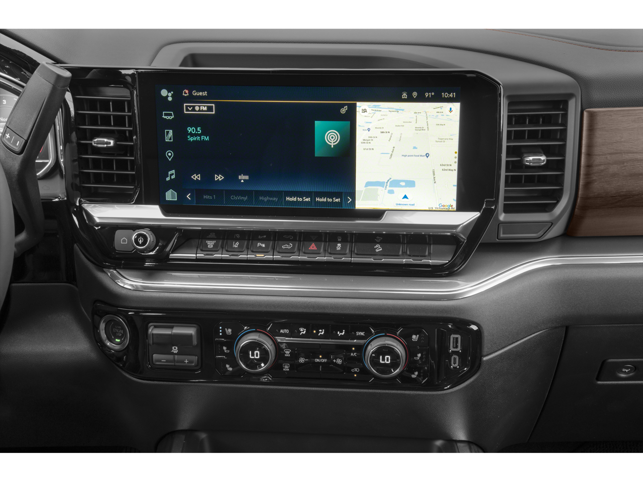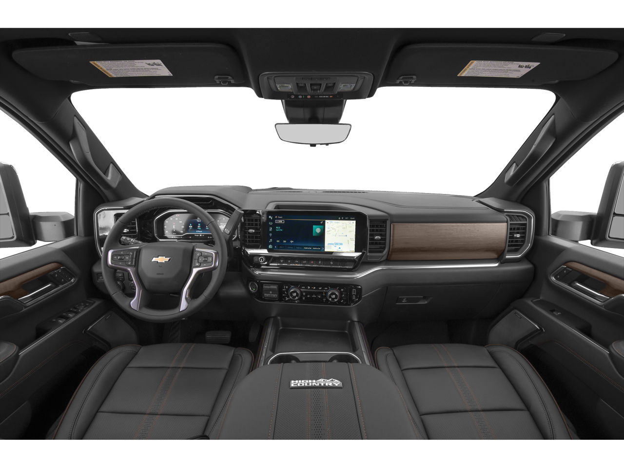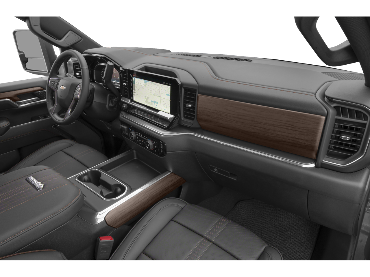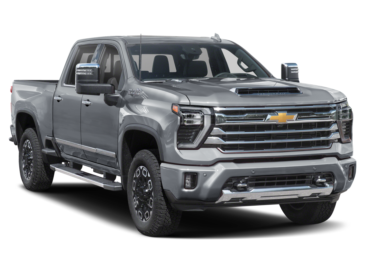 SEATS, FRONT BUCKET with center console, for Crew Cab and Double Cab models (STD), REAR CAMERA MIRROR, INSIDE REARVIEW AUTO-DIMMING with full camera display, REAR AXLE, 3.42 RATIO, MULTICOLOR 15" DIAGONAL HEAD-UP DISPLAY, LICENSE PLATE KIT, FRONT, JET BLACK, PERFORATED LEATHER SEAT TRIM, HILL DESCENT CONTROL, HIGH COUNTRY PREFERRED EQUIPMENT GROUP includes standard equipment, GVWR, 11,350 LBS. (5148 KG), EXHAUST BRAKE, ENGINE, DURAMAX 6.6L TURBO-DIESEL V8 B20-Diesel compatible, (470 hp [350.5 kW] @ 2800 rpm, 975 lb-ft of torque [1322 Nm] @ 1600 rpm), ENGINE BLOCK HEATER, AUDIO SYSTEM, CHEVROLET INFOTAINMENT 3 PREMIUM SYSTEM with Google built-in compatibility (select service plan required, terms and limitations apply) including navigation capability, 13.4" diagonal HD color touchscreen, includes multi-touch display, AM/FM stereo, Bluetooth® streaming audio for music and most phones; featuring Wireless Apple CarPlay and Wireless Android Auto capability for compatible phones, advanced voice recognition, in-vehicle apps, personalized profiles for infotainment and vehicle settings (STD), ASSIST STEPS, POWER-RETRACTABLE, WITH BRIGHT TRIM includes LED lighting, ALTERNATOR, 220 AMPS, ADAPTIVE CRUISE CONTROL, Wireless phone projection for Apple CarPlay and Android Auto, Wireless Charging (Not compatible with all phones. Compliant batteries include QI and PMA technologies. Reference Mobile devices manual to confirm what type of battery it uses.), Wipers, front rain-sensing, Windows, power rear, express down.