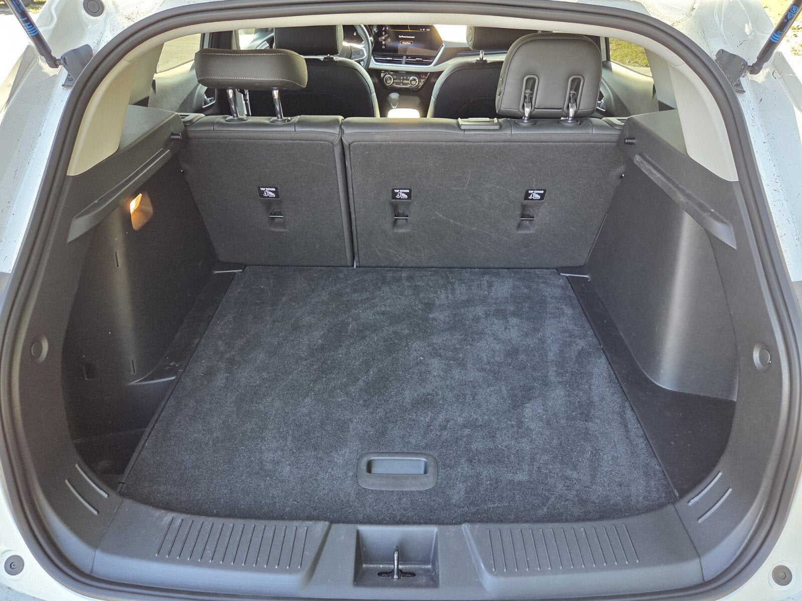 LT CONVENIENCE PACKAGE includes (AVJ) Keyless Open, (KA1) heated driver and front passenger seats, (UVD) heated steering wheel), (N5F) wrapped steering wheel and (DLF) outside heated power-adjustable mirrors, LICENSE PLATE FRONT MOUNTING PACKAGE, DRIVER CONFIDENCE PACKAGE includes (UD7) Rear Park Assist, (UFG) Rear Cross Traffic Alert and (UKC) Lane Change Alert with Side Blind Zone Alert (Also includes (KSG) Adaptive Cruise Control. , LANE CHANGE ALERT WITH SIDE BLIND ZONE ALERT, KEYLESS OPEN, FRONT DOORS includes extended range Remote Keyless Entry; passive entry system can still be programmed to unlock all doors at once with one press or with two presses of the front door buttons, JET BLACK WITH BLUE ACCENTS, CLOTH/EVOTEX SEAT TRIM, ENGINE, ECOTEC 1.2L TURBO DOHC DI WITH VARIABLE VALVE TIMING (VVT) (137 hp [102 kW] @ 5000 rpm, 162 lb-ft of torque [219 N-m] @ 2500 rpm) (STD), AXLE, 3.50 FINAL DRIVE RATIO, AUDIO SYSTEM, 11" DIAGONAL HD COLOR TOUCHSCREEN AM/FM stereo. Additional features for compatible phones include: Bluetooth® audio streaming for 2 active devices, voice command pass-through to phone, wireless Apple CarPlay and wireless Android Auto capable (STD), ADAPTIVE CRUISE CONTROL, Wireless Apple CarPlay/Wireless Android Auto, Wipers, front intermittent, variable speed, Wiper, rear, intermittent, Windows, power rear, express down, Window, power, front passenger with express down, Window, power, driver with express down, Wi-Fi Hotspot capable (Terms and limitations apply. See onstar.com or dealer for details.), Wheels, 17" (43.2 cm) Gray-painted machined aluminum, Wheel, spare, 16" (40.6 cm) steel, Visors, driver and front passenger vanity mirrors, covered.